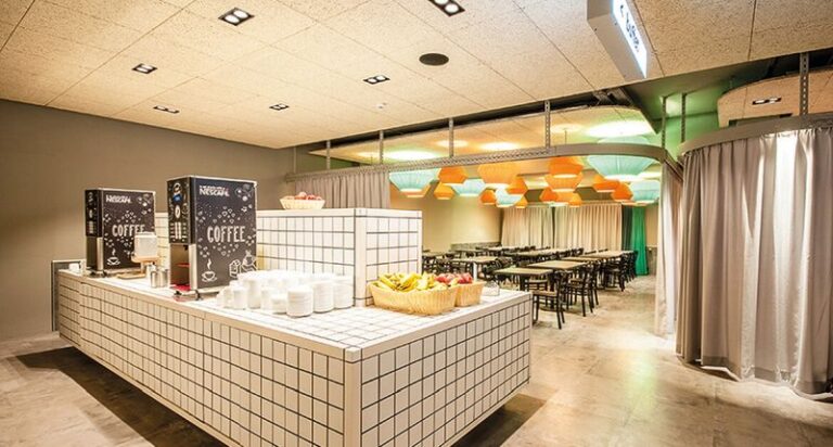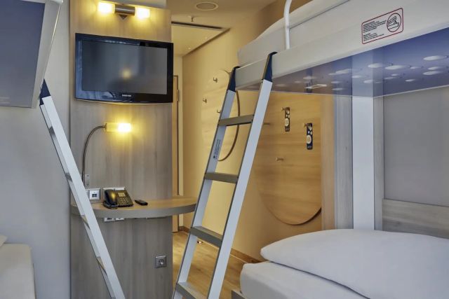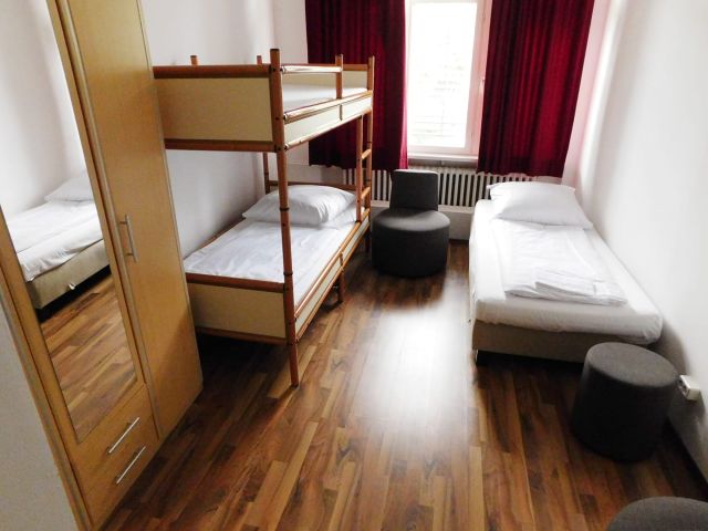 Im A&O-Hostel Berlin Mitte übernachten die Schülerinnen und Schüler in modern und freundlich eingerichteten 4-6-Bettzimmern. Für die Begleitpersonen werden separate Einzelzimmer gebucht. Alle Räume verfügen über ein eigenes Bad mit DU/WC. Im Haus wird ein All-you-can-eat-Frühstücksbuffet serviert. Schulklassen bekommen auf Wunsch auch Mittag- und Abendessen und Lunchpakete.