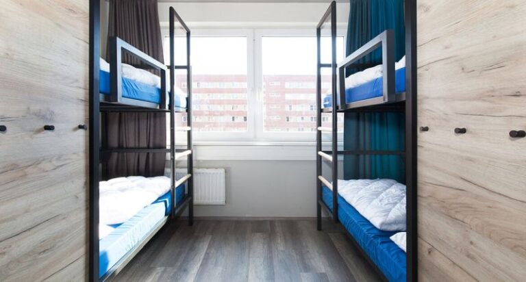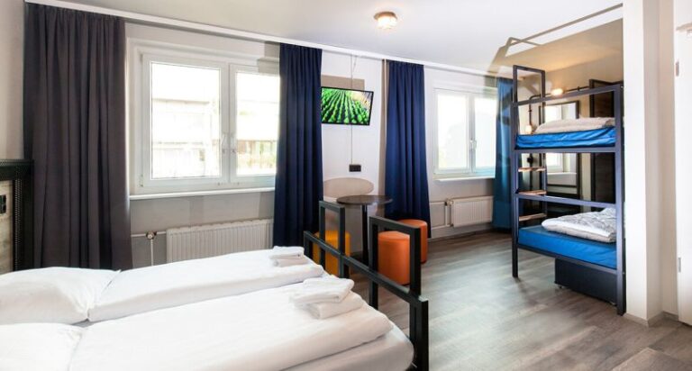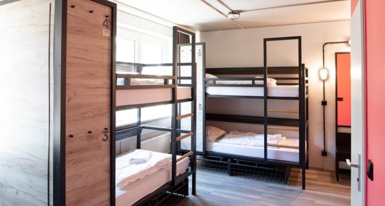 Im angesagten Metropol-Hostel übernachten die Schülerinnen und Schüler in sauber und modern eingerichteten 4-10-Bettzimmern. Die sanitären Einrichtungen befinden sich zum Teil in den Zimmern oder jeweils auf der Etage. Für die Begleitpersonen werden separate Einzelzimmer mit eigenem Bad gebucht. Im Haus wird ein Frühstücksbuffet angeboten, für Schulklassen kann Halbpension dazugebucht werden.